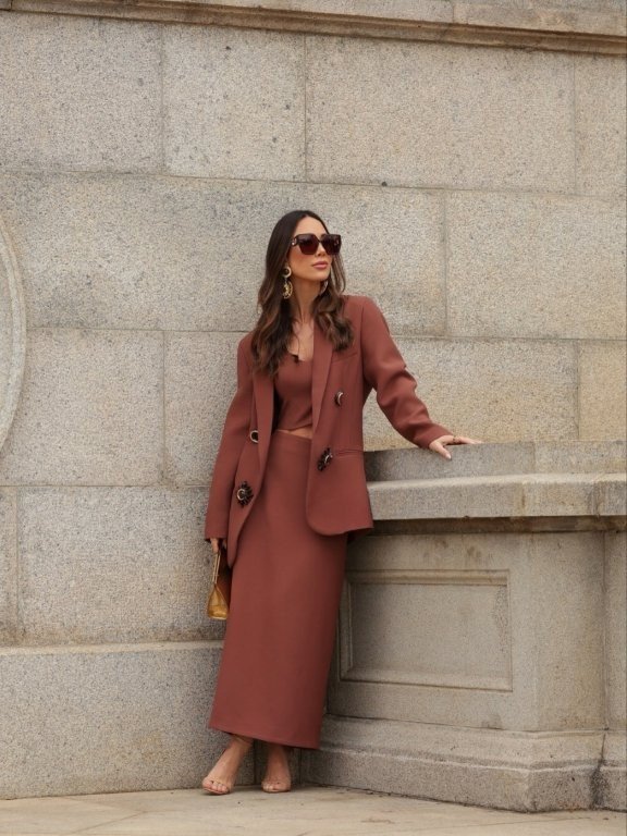 Modelagens mais amplas e bem estruturadas reduzem o contato excessivo do tecido com o corpo, proporcionando maior frescor e liberdade de movimento. Calças de corte reto, saias midi e vestidos fluidos são opções ideais para o trabalho, pois equilibram conforto e sofisticação. Essas peças também permitem composições mais modernas, garantindo a formalidade necessária no ambiente profissional.