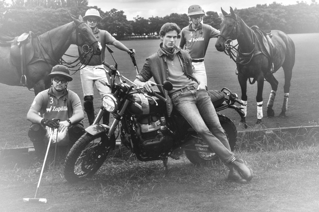 A campanha da coleção foi fotografada por Gustavo Zylberstaijn com os modelos Danyllo Perry e Gregory Fabbri e contou com uma parceria com a empresa de motos Royal Enfield, que marcou presença durante o fashion shooting. Os cenários escolhidos foram as cocheiras e o campo do Maragata Polo, equipe muito tradicional do esporte que tem conexão com a família de um dos fundadores. A cena remete ao lifestyle clássico dos clubes esportivos, que faz a campanha da Zapälla mergulhar no universo que inspira a coleção: a conexão entre esporte, tradição e elegância masculina. Os modelos transitam por cenários que evocam modalidades como polo, golfe e tênis, enquanto a presença dos cavalos reforça a herança e o espírito do polo que fazem parte do DNA da marca. A atmosfera natural e sofisticada traduz visualmente o conceito de Sports & Social Club, celebrando um estilo de vida que une performance, convivência e tradição.